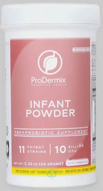 Pro Dermix Infant Powder probiotic supplement combines 5 potent strains in a base of inulin, to boost baby's health and prevent infections and discomfort. Each scoop contains 30 billion CFU of live bacteria, to create a healthy bacterial balance.