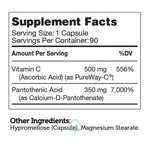 Pantothenic Acid and Vitamin C are potent nutrients that work synergistically to support healthy immune system response. Pantothenic Acid, also known as Vitamin B5, is a member of the B-complex family. Essential for many bodily functions, it is necessary for the metabolism of fats, proteins and carbohydrates. Additionally, Vitamin C functions as a powerful antioxidant, immune booster and improves iron absorption. It is also needed to make collagen, the "glue" that strengthens the muscles and blood vessels.